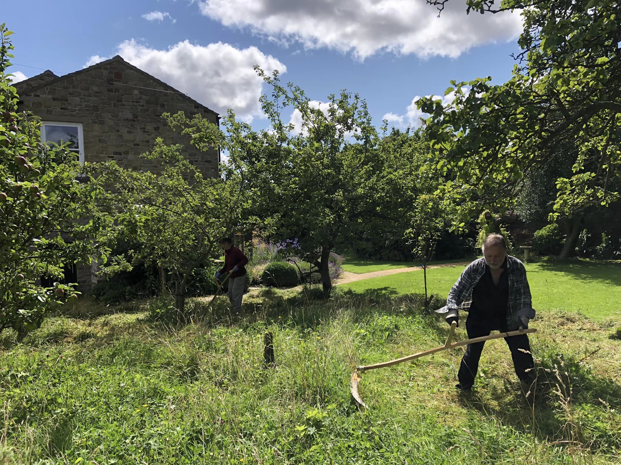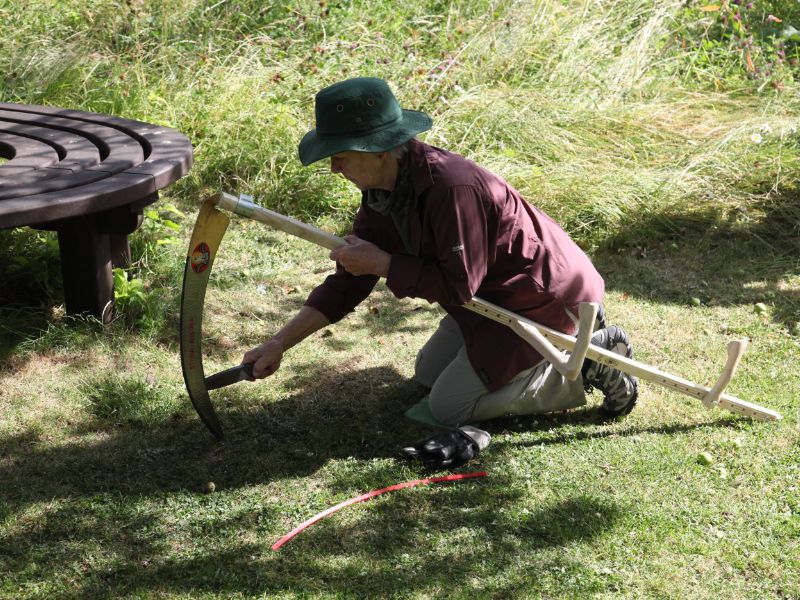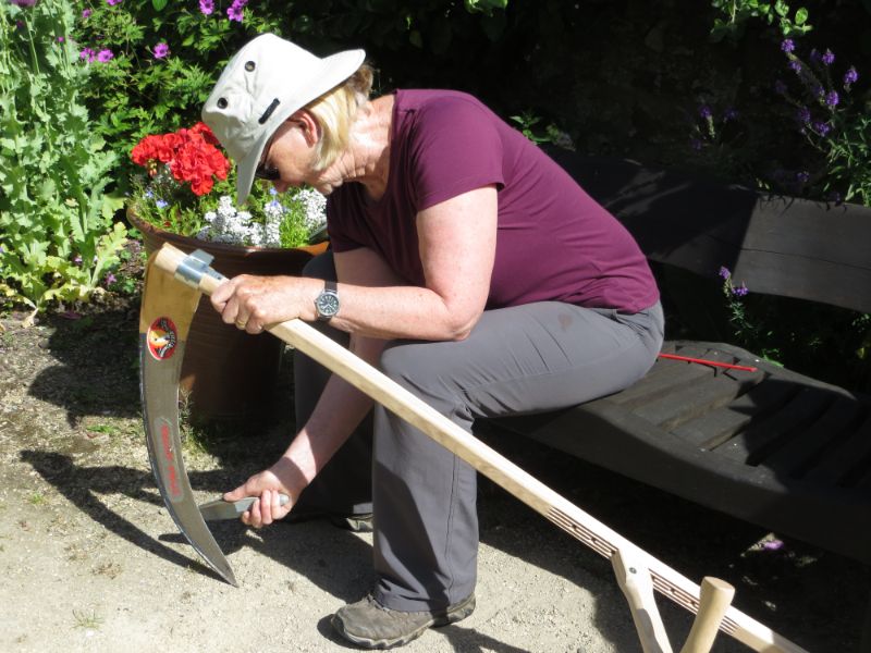 Three of our members were given chance to go on a course to learn how to scythe the meadow, as we had previously used a power scythe which was getting more difficult to manoeuvre round the fruit trees. The course was organised by the Naturally Connected Farming and Wildlife officer, which we all found very useful helpful, and more environmentally friendly.